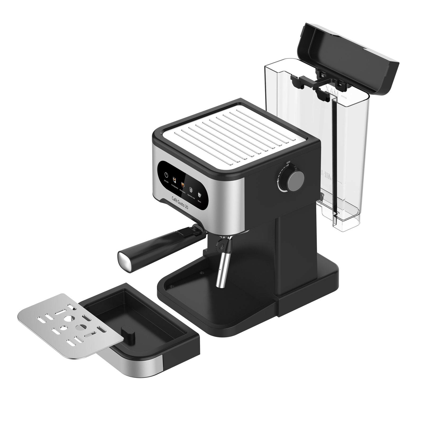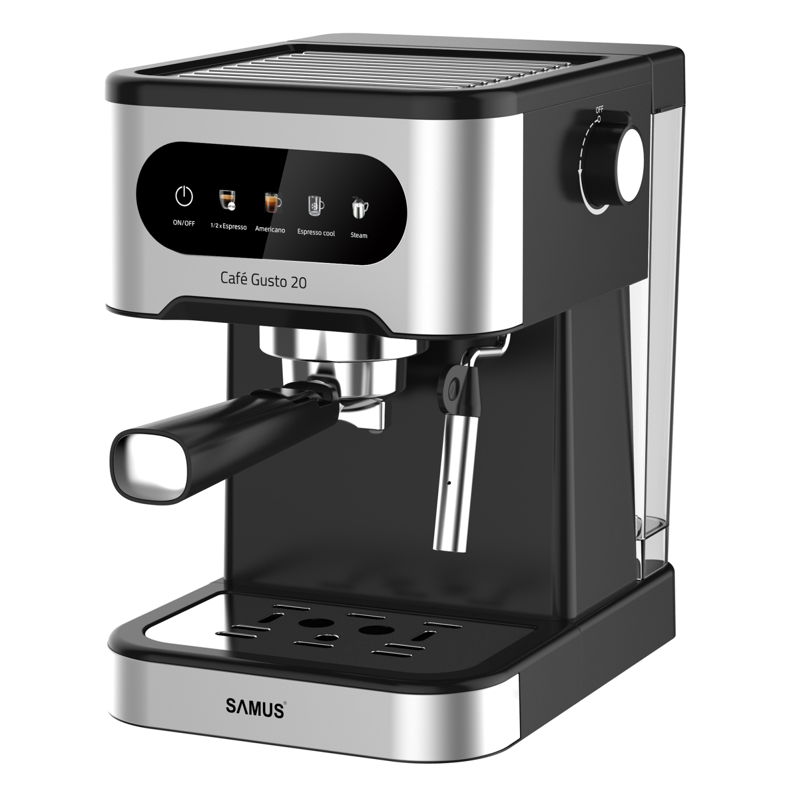 Espressorul Samus Café Gusto 20 este un model automat sofisticat, conceput să ofere performanță și versatilitate în prepararea cafelei, cu opțiuni multiple și funcții inteligente.