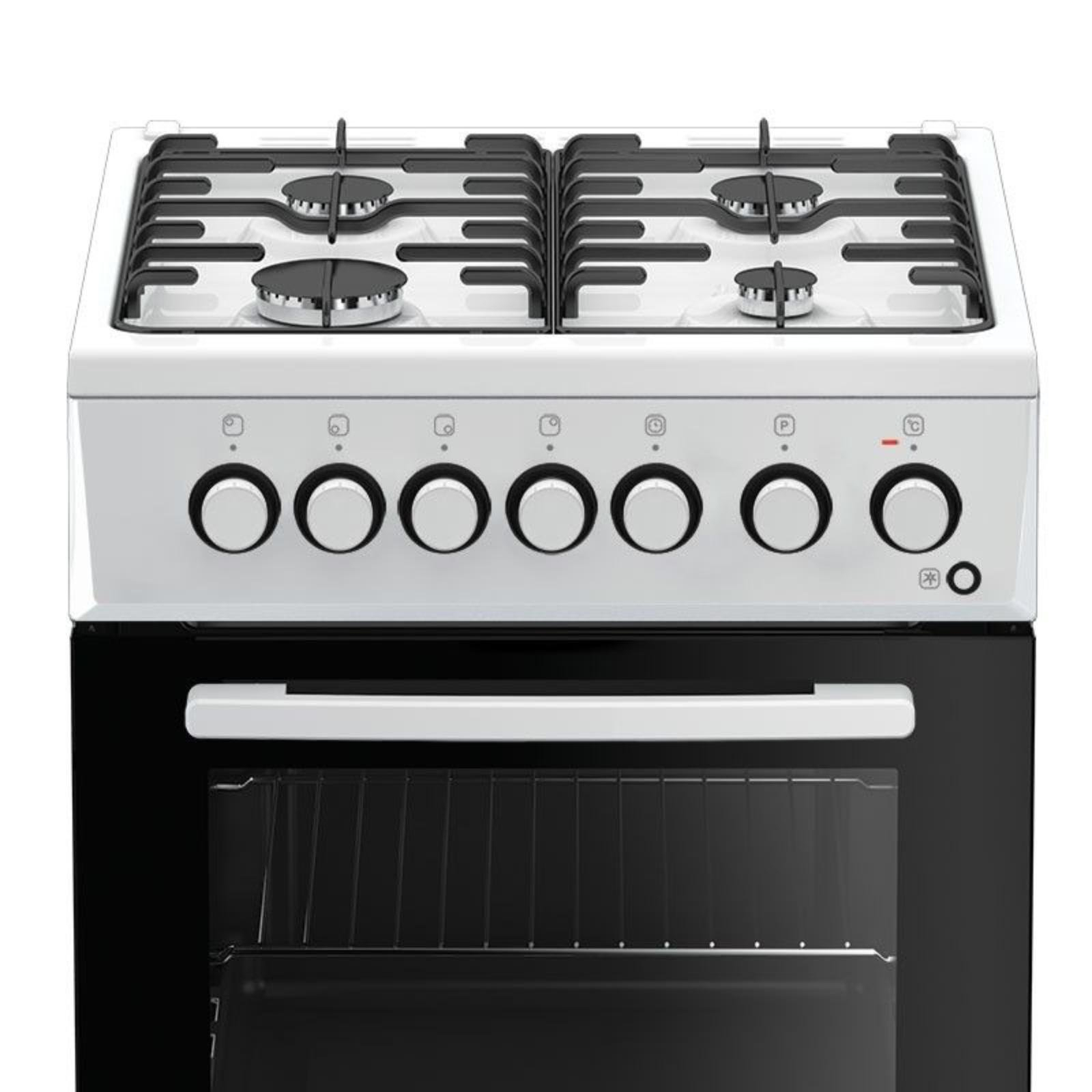 Aragaz cu cuptor electric, 4 arzatoare gaz, timer, lumina, aprindere electrica, grill, Alb, ARCTIC
