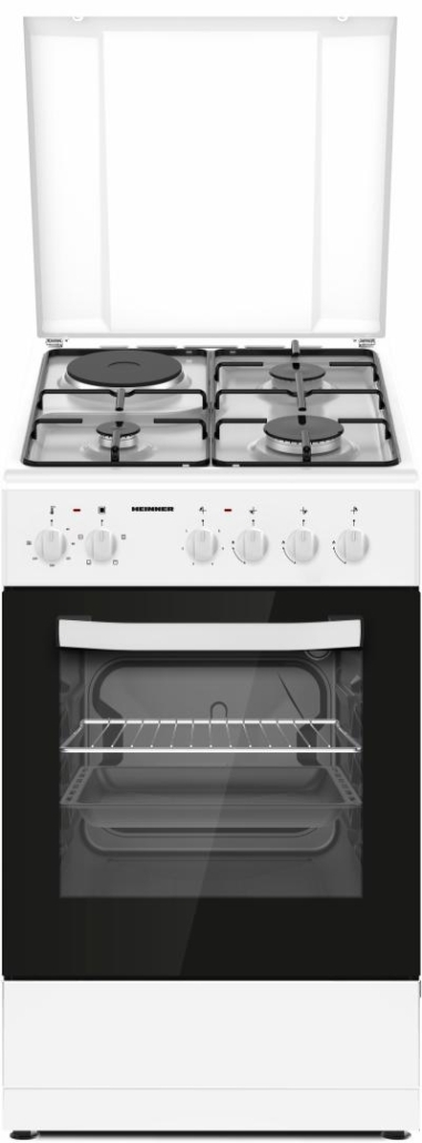 Aragazul Heinner HFSC-S56E1HSWH este un aparat mixt care combină avantajele gătitului pe gaz cu plita electrică, ideal pentru bucătării compacte de 50×60 cm. Dispune de 3 arzătoare pe gaz, o zonă electrică, cuptor electric cu funcţie grill şi iluminare interioară, clasa energetică A. Acest model oferă versatilitate, eficienţă şi performanţă într-un format adaptat spaţiilor restrânse.