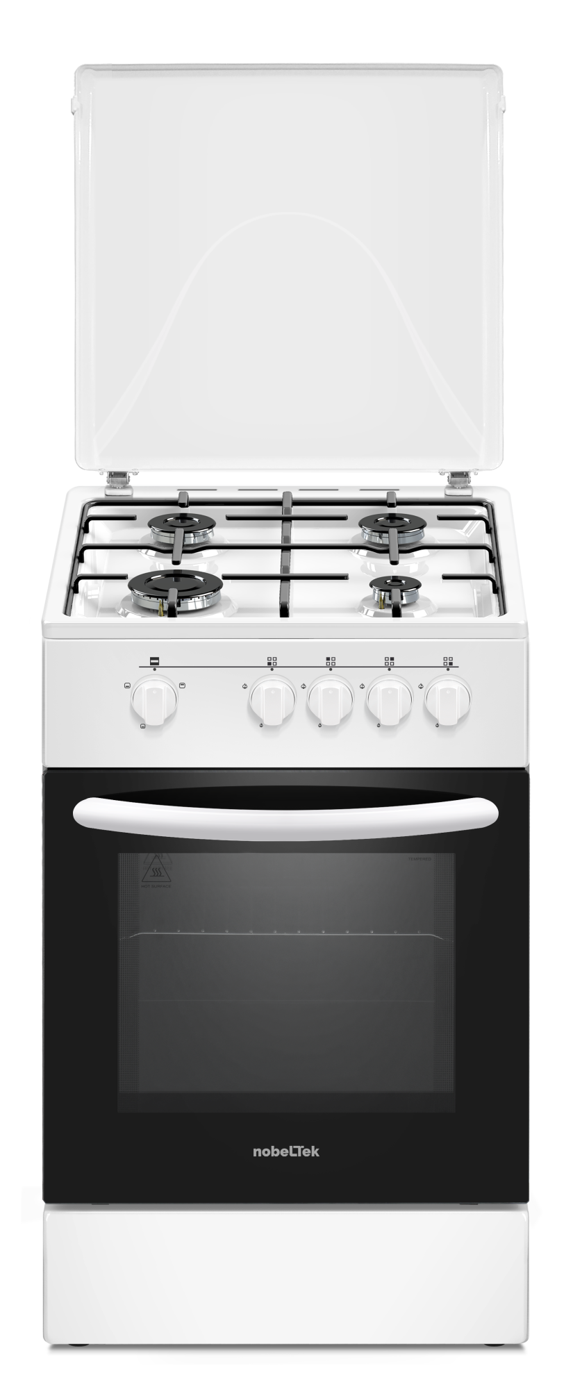 Aragaz cu cuptor pe gaz, 4 arzatoare, GPL, 50 x 60 cm, siguranta gaz, capac metalic, email, Alb, NOBELTEK
