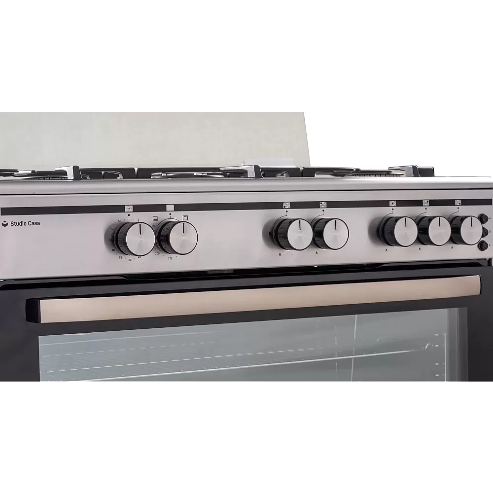 Cu un design robust și elegant în finisaj inox, aragazul Studio Casa GRAND CUCINA GC90 New este alegerea ideală pentru familiile numeroase sau pasionații de gătit. Dispune de 5 arzătoare pe gaz, inclusiv un arzător WOK, oferind flexibilitate pentru diverse tipuri de preparate.