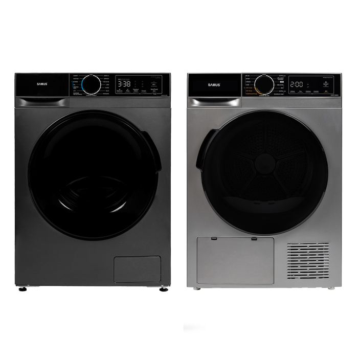 Pachetul Samus WSADI-8145DS + uscător de rufe este o soluție completă și eficientă pentru toate nevoile tale de spălat și uscat rufe, proiectată pentru confort și performanță într-un design modern gri închis / antracit.