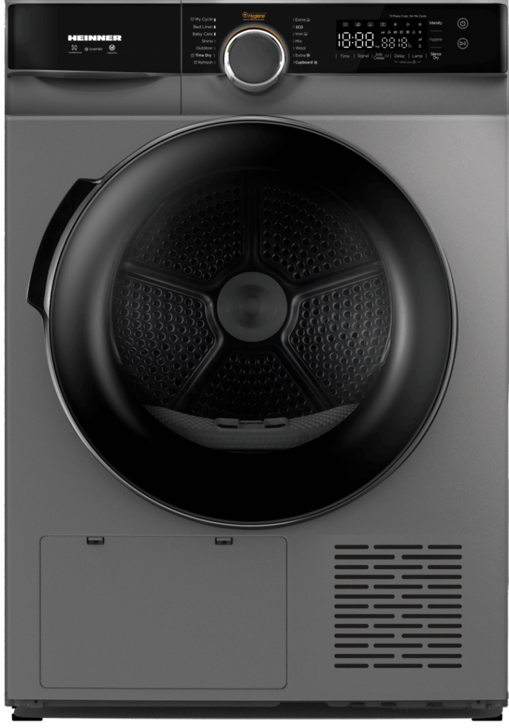 Uscătorul de rufe Heinner HHPD-M9K3SA+++ este proiectat pentru performanță și eficiență în gestionarea rufelor după spălare. Cu o capacitate de 9 kg, motor Inverter și tehnologie cu pompă de căldură, acest model asigură o uscare delicată, rapidă și economică, într-un modul modern și ușor de utilizat.