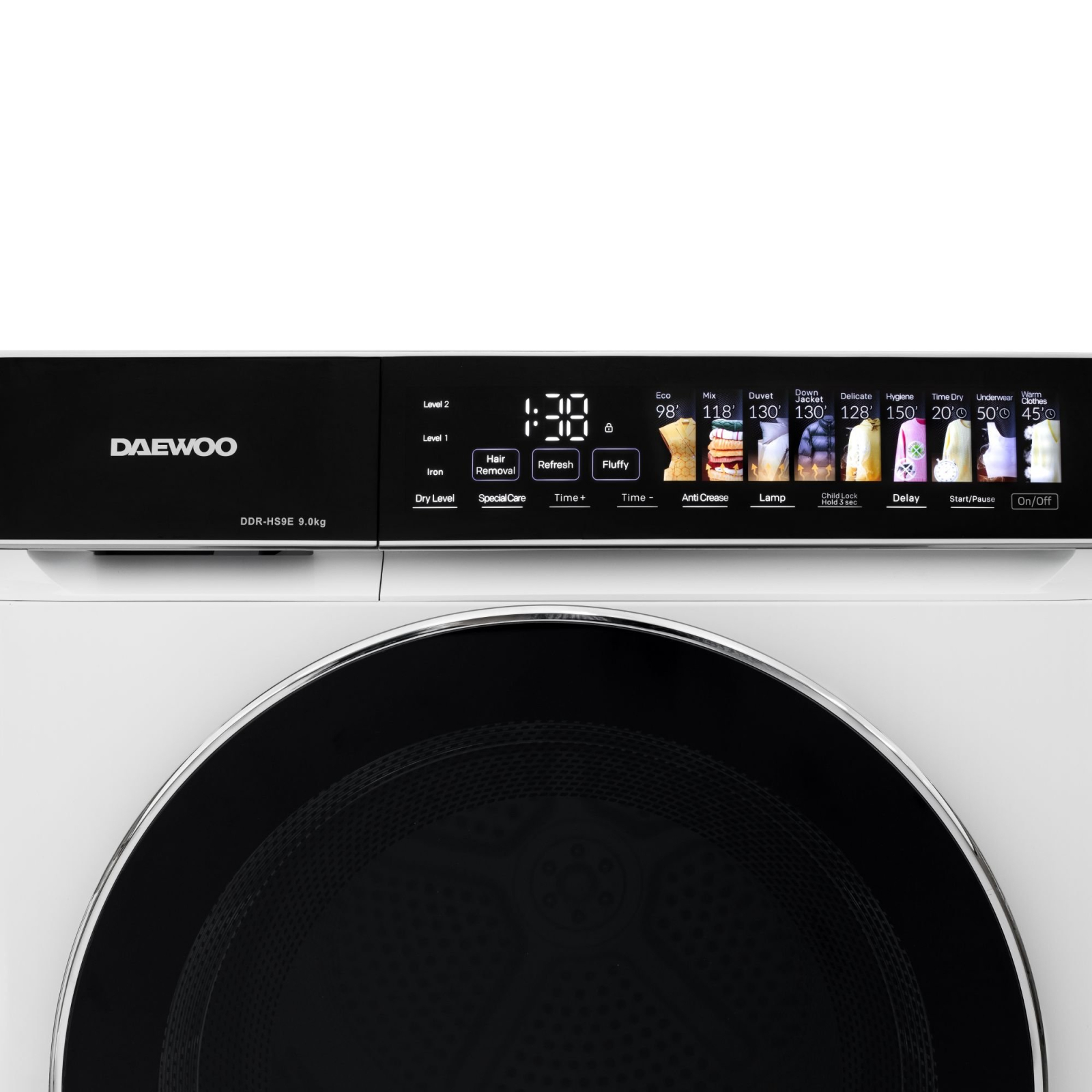 Uscătorul de rufe Daewoo DDR-HS9E este o alegere excelentă pentru cei care își doresc o soluție eficientă și modernă de uscare a hainelor acasă. Cu o capacitate generoasă de 9 kg, acest model este potrivit pentru familii sau pentru utilizatori care au multe încărcări de rufe. Tehnologia cu pompă de căldură asigură uscare delicată și eficientă din punct de vedere al consumului, menținând țesăturile în stare bună și reducând costurile energetice.
