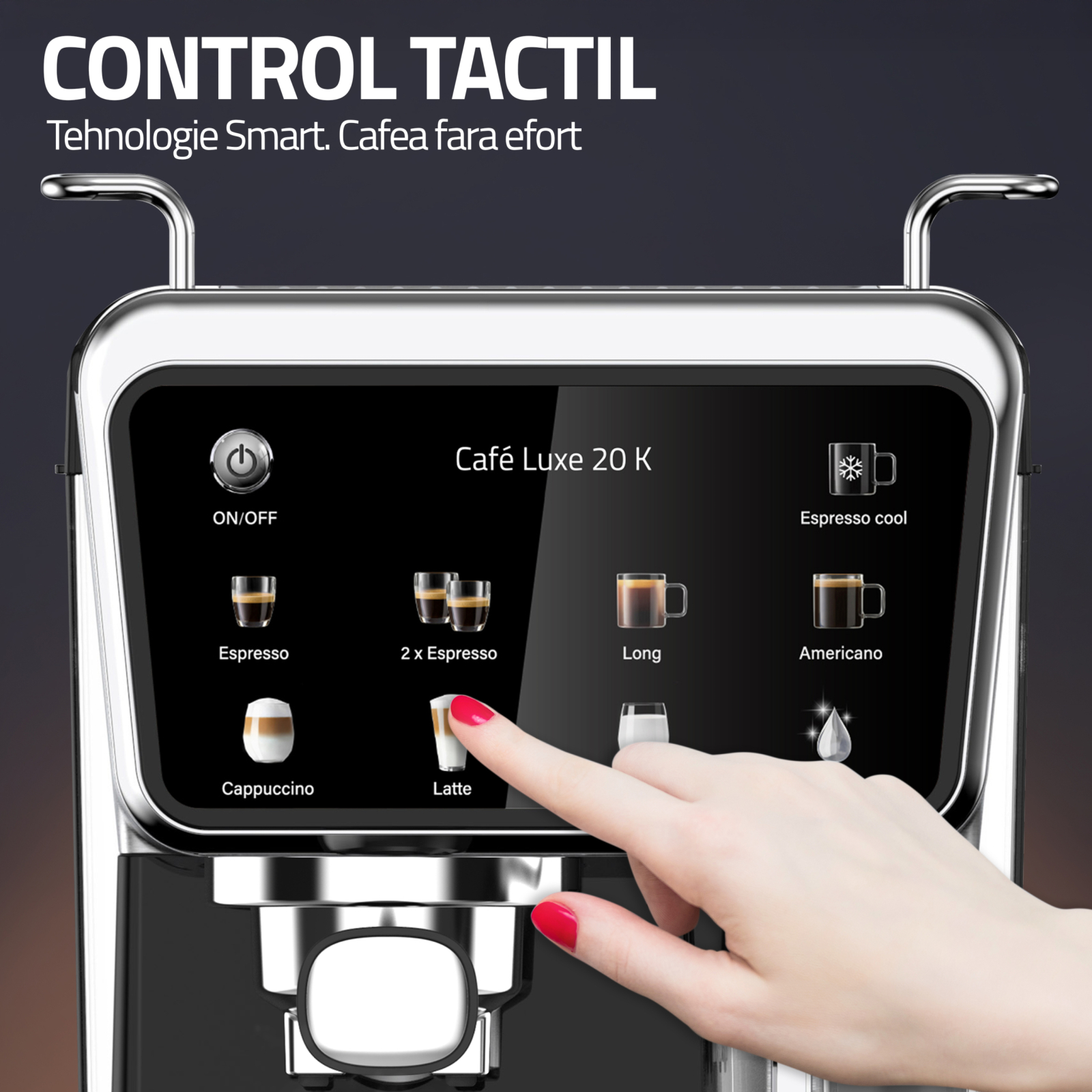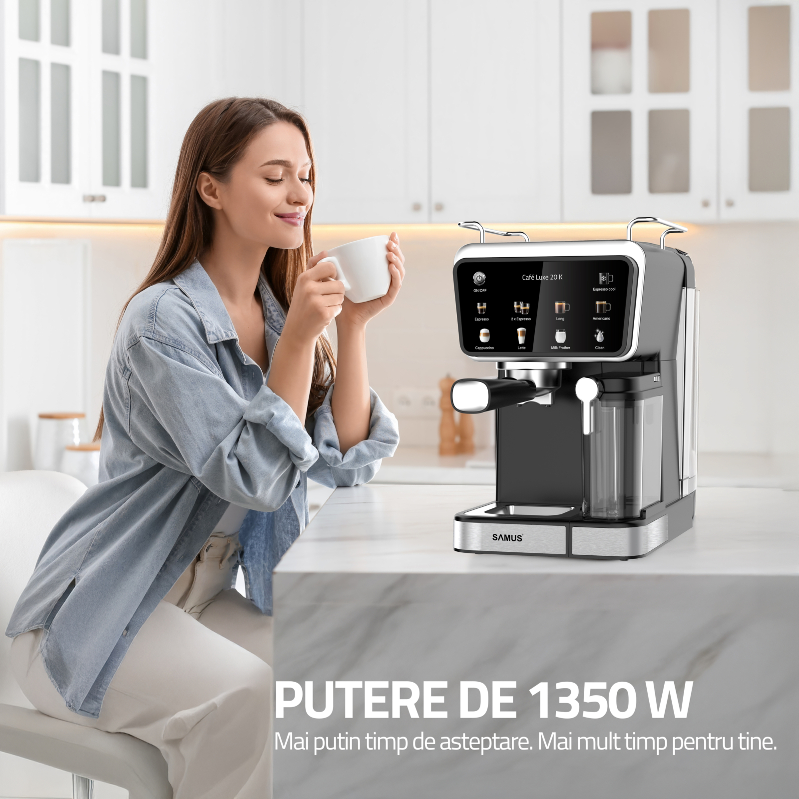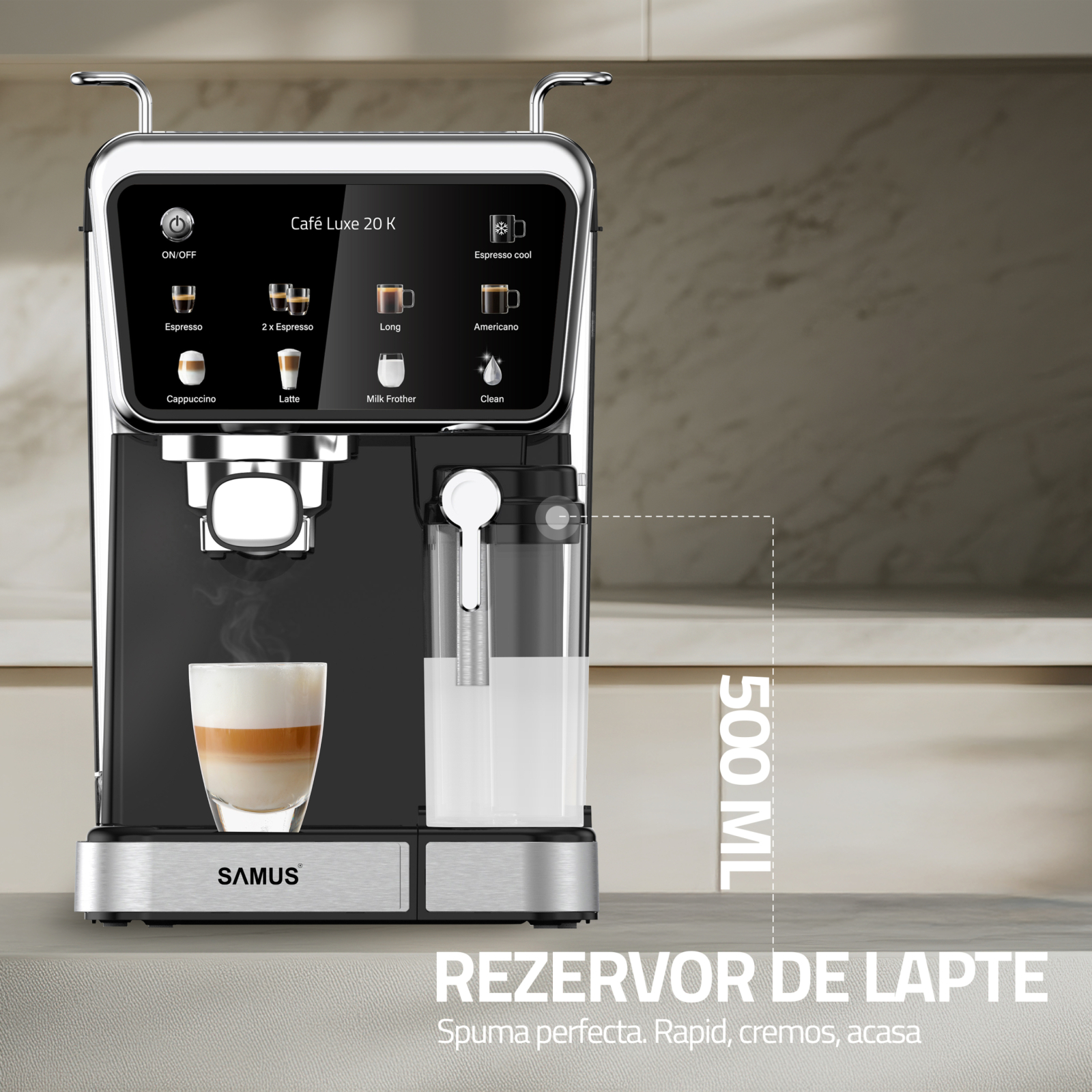 Espressor cafea, manual, 8 tipuri de bauturi, ecran tactil, rezervor lapte, pompa 20 bari, rezervor de apa 1.5 L, SAMUS
