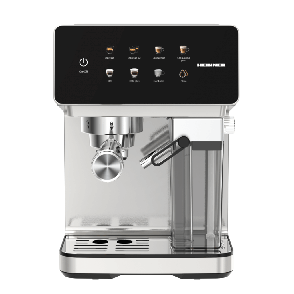 Espressor digital, rezervor lapte, 4 tipuri de bauturi, spumare lapte, control temperatura, Inox, HEINNER