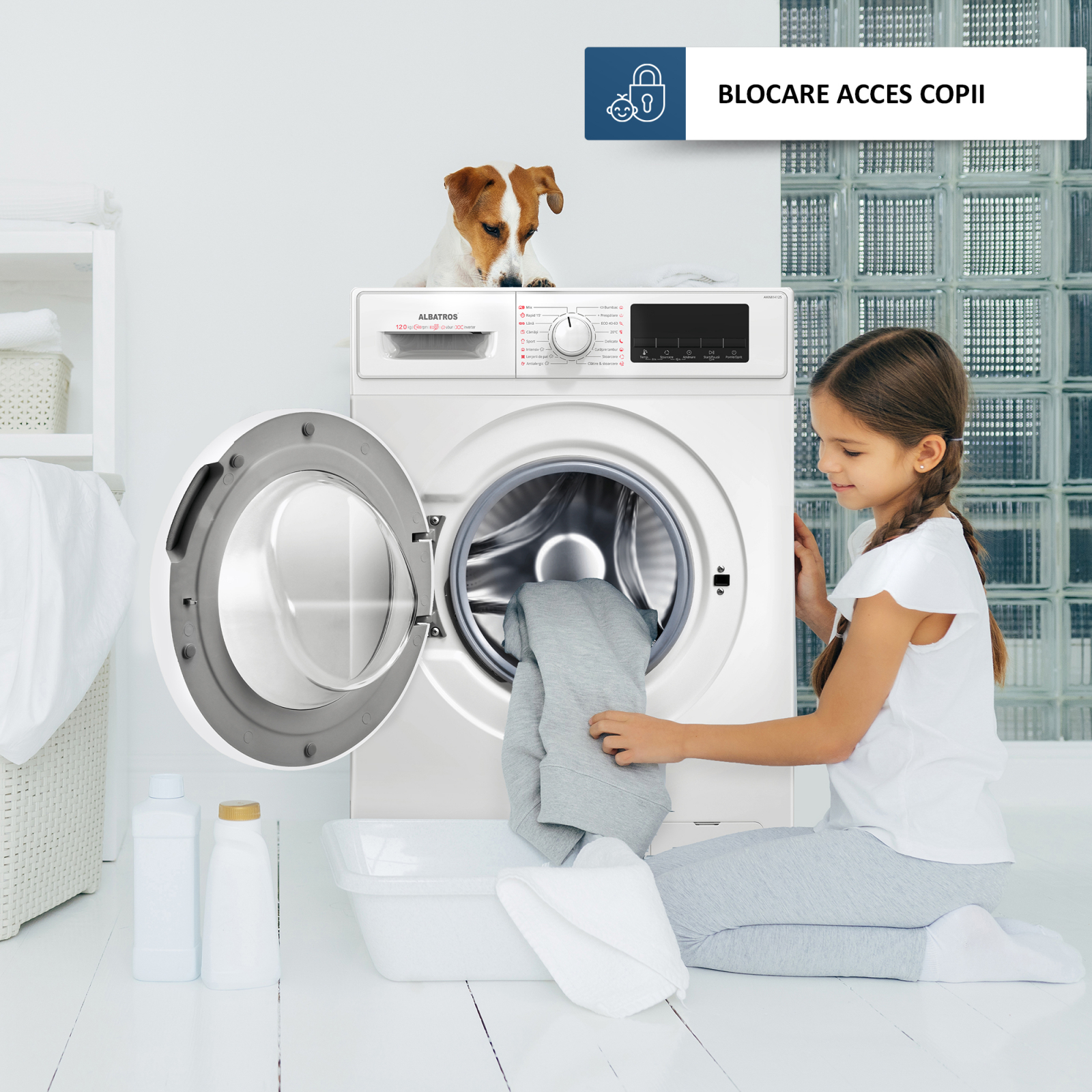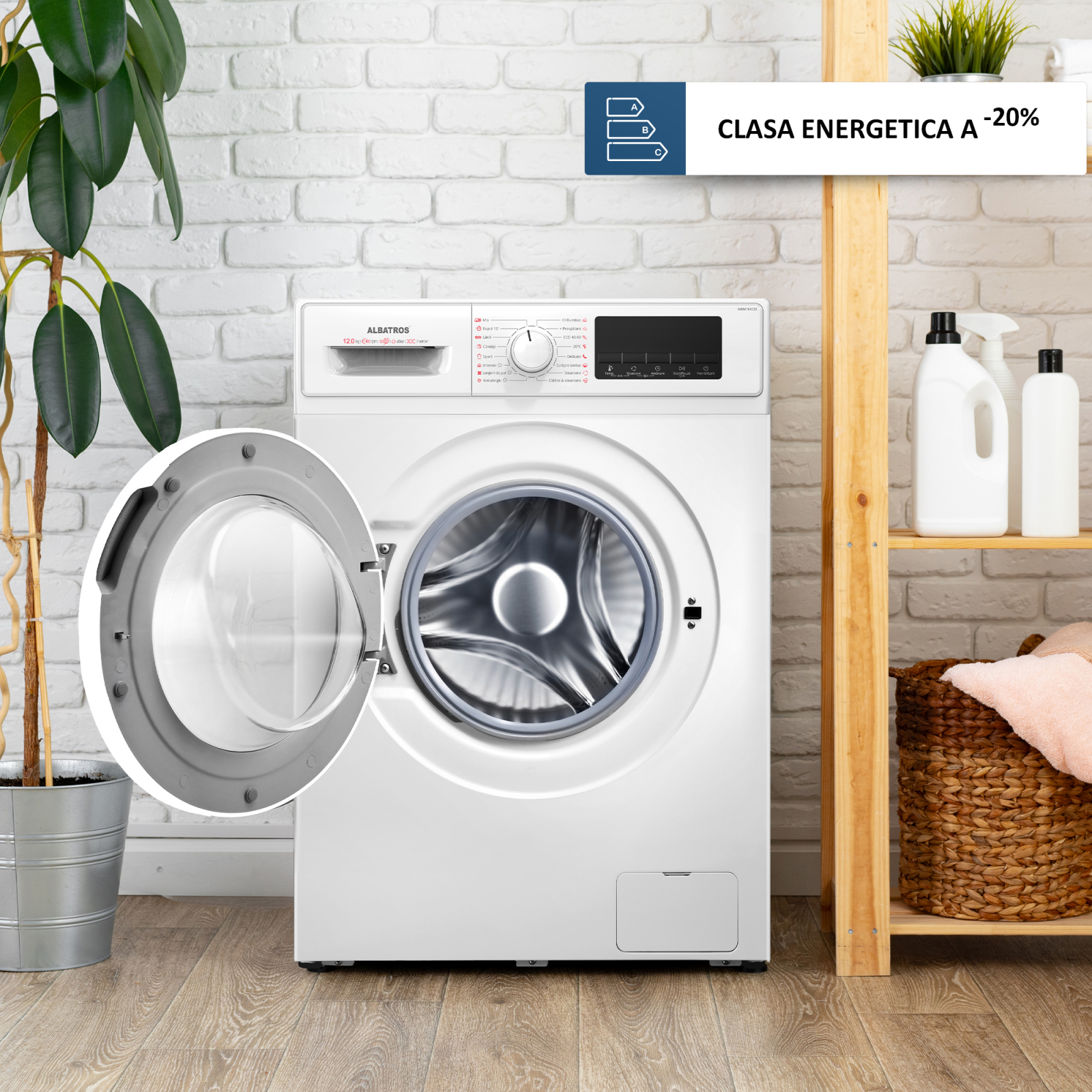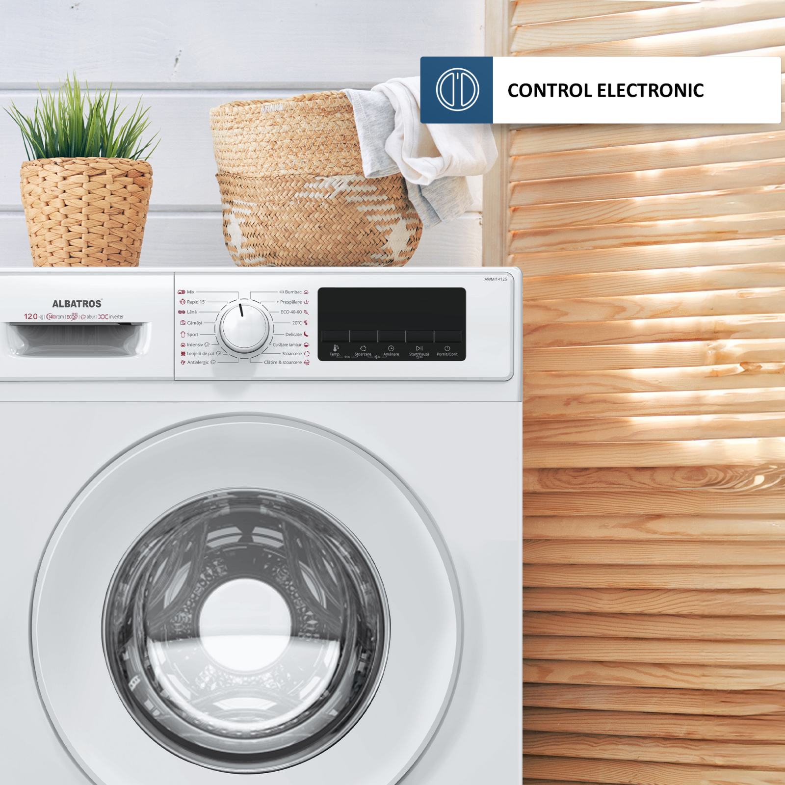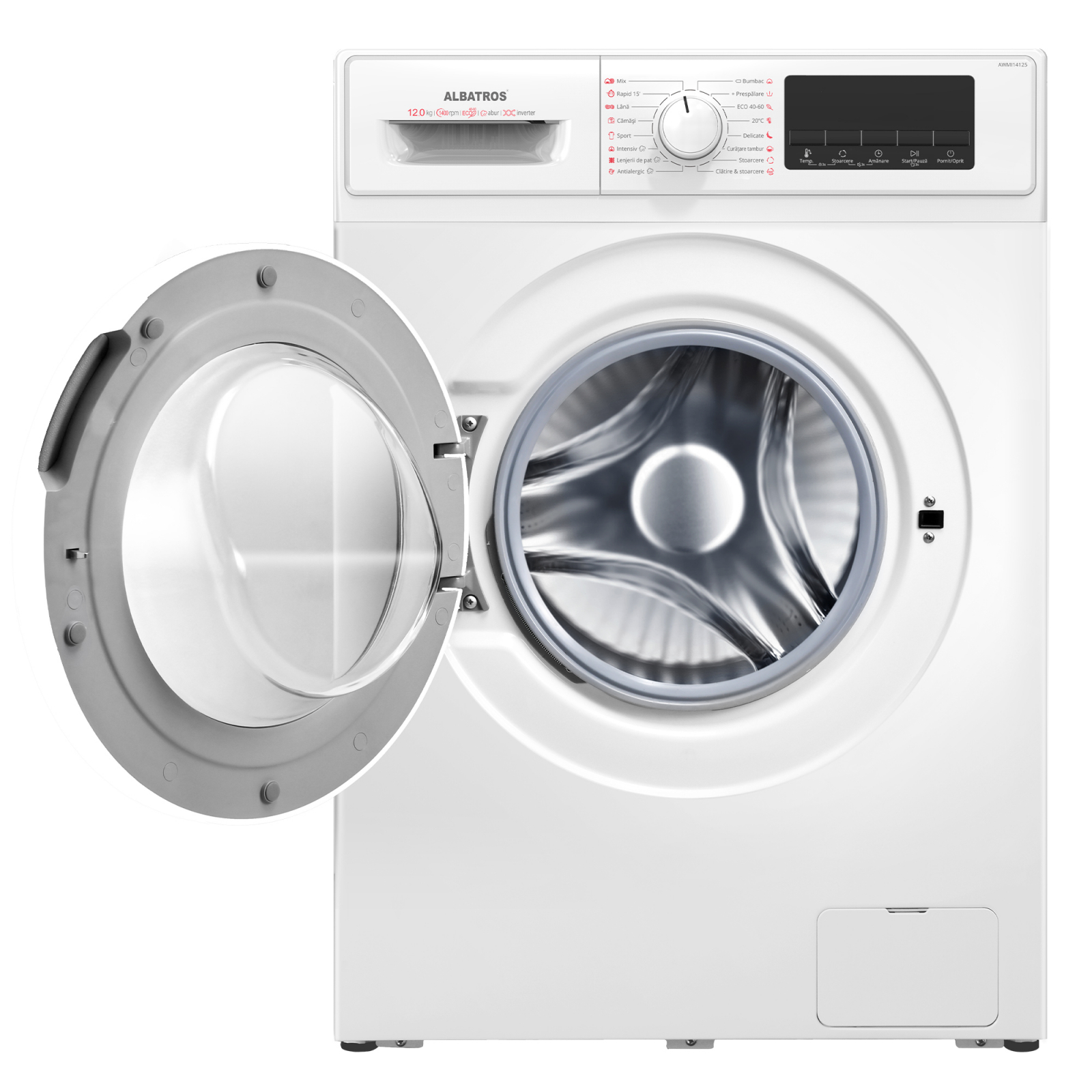 Cu o capacitate de 12 kg, acest model este ideal pentru gospodării numeroase sau pentru spălări voluminoase, reducând frecvența ciclurilor.