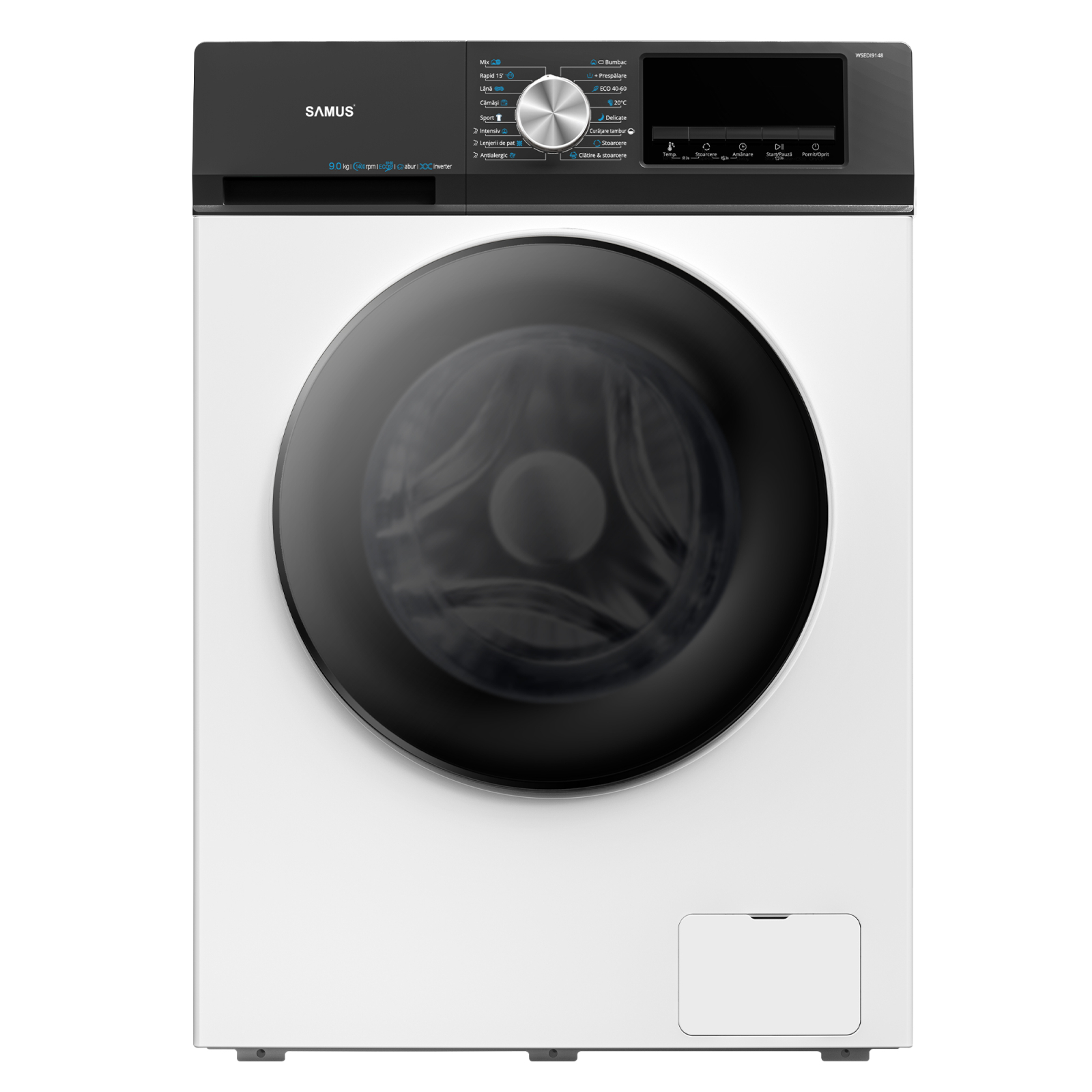 Această mașină are motor Inverter care oferă o funcţionare silenţioasă și consum redus de energie. Cu o capacitate de 9 kg și centrifugare la 1400 rotaţii pe minut, stoarce eficient rufele, reducând timpul necesar pentru uscare.
