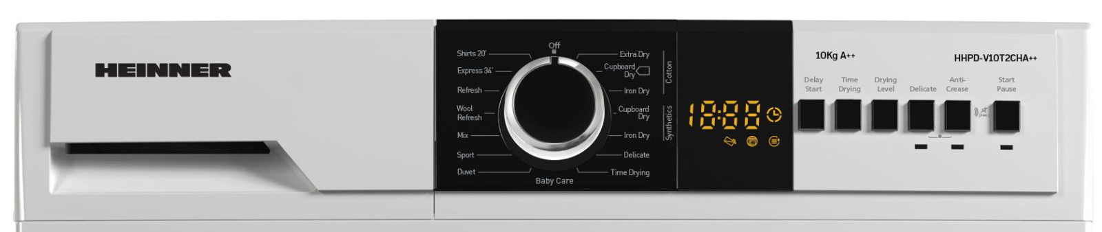 Heinner HHPD-V10T2CHA++ este un uscător de rufe performant, cu capacitate mare și eficiență energetică ridicată, ideal pentru familii care doresc haine perfect uscate, protejate și pregătite pentru purtare imediată. Cu o capacitate de 10 kg, tehnologie cu pompă de căldură și 15 programe de uscare, acest model asigură rezultate impecabile la fiecare utilizare, menținând în același timp un consum redus de energie.