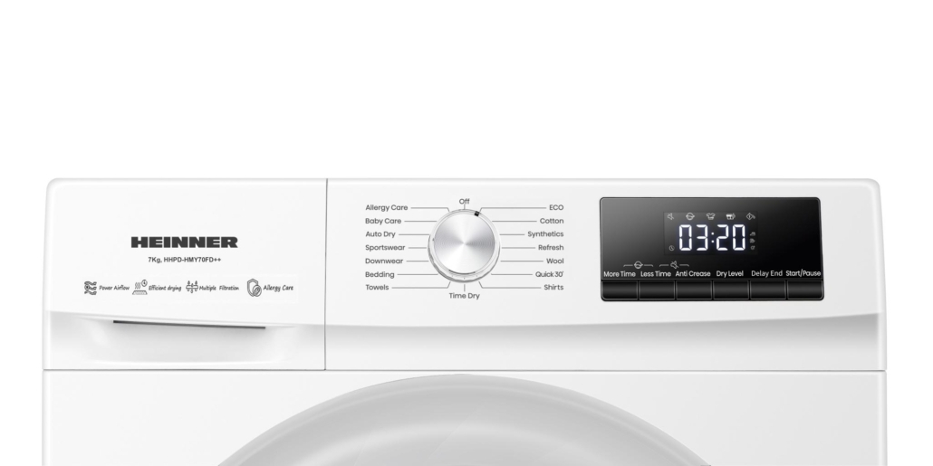Heinner HHPD-HMY70FD++ este un uscător de rufe cu tehnologie modernă, conceput pentru a combina eficiența energetică cu îngrijirea delicată a hainelor. Cu o capacitate de 7 kg, 15 programe de uscare și un panou de control digital intuitiv, acest model oferă performanță constantă și confort în utilizare. Este alegerea ideală pentru familiile care doresc haine perfect uscate și protejate.
