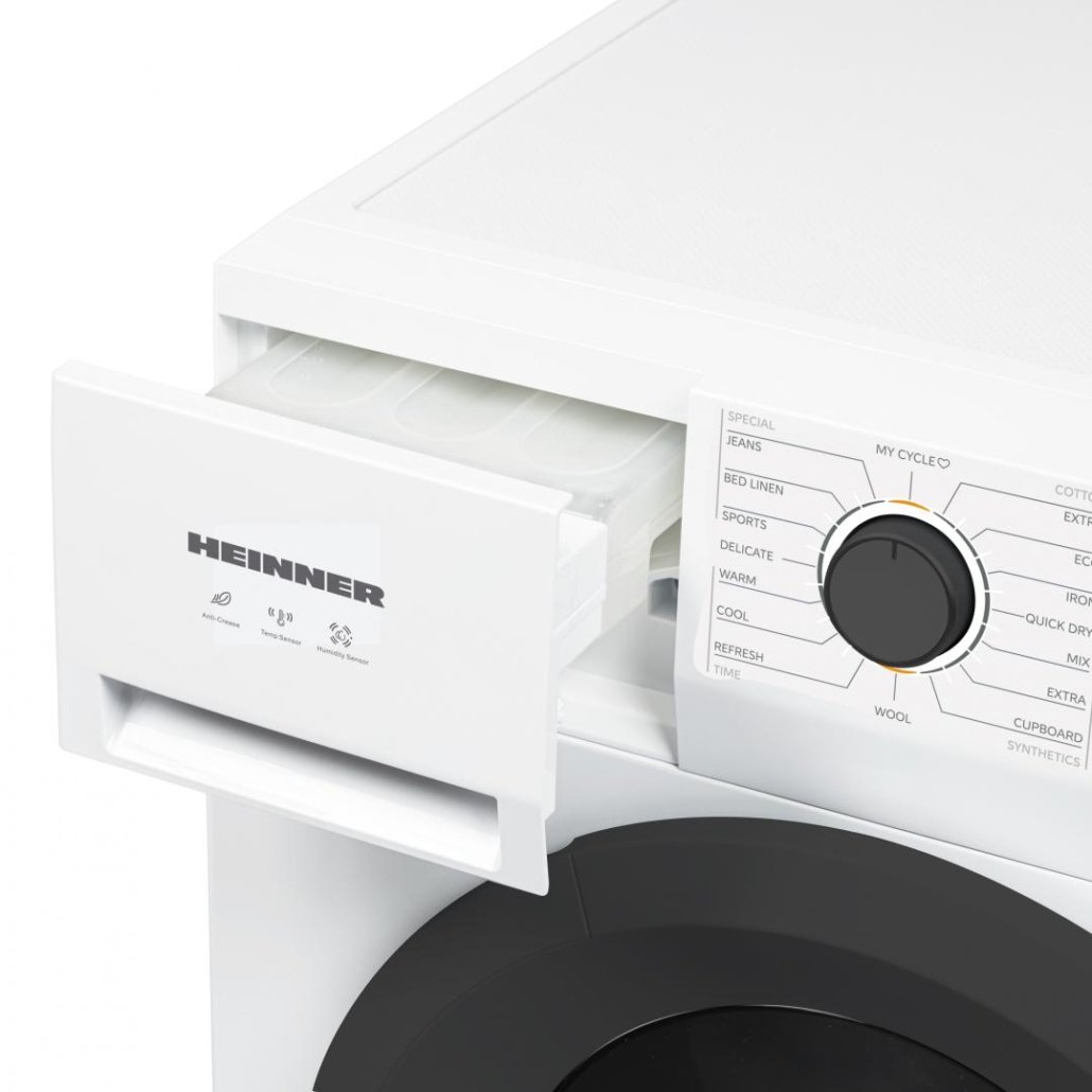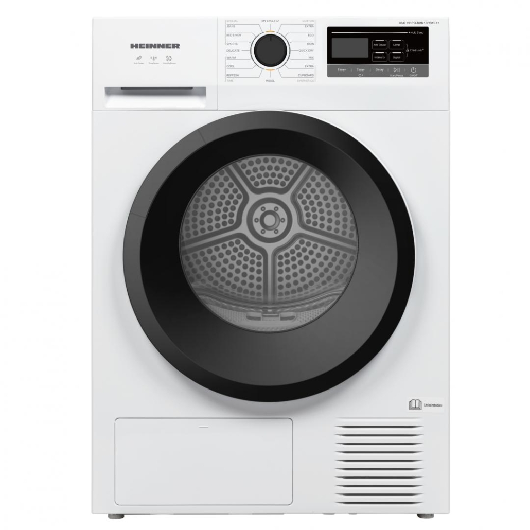 Uscator de rufe cu pompa de caldura, capacitate 8 kg, 16 programe, panou digital, clasa E, Alb, HEINNER